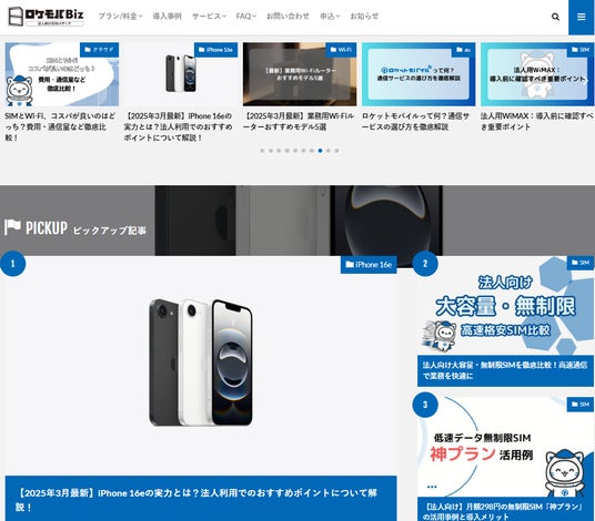 当社は、「ロケットモバイル」ブランドにて低価格かつ柔軟な格安SIMサービスを提供する通信会社です。月額298円(税込328円)から利用可能な「神プラン」など、多様なデータ通信プランを揃え、IoTデバイスや法人利用にも対応しています。近年、企業におけるリモートワーク環境の整備やデジタル化が加速する中、法人のお客様から通信環境の最適化に関する相談が増加しております。このような状況を踏まえ、法人向けの通信環境をより良いものにするため、実践的な活用方法や最新の通信技術に関する情報を発信する場が必要だと考え、この度公式オウンドメディア「ロケモバBiz」を立ち上げることにいたしました。