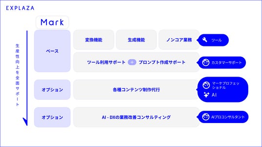 株式会社エクスプラザ、コンテンツ生成 AI 「Mark」で AI 変換機能をリリース。日本初※、コンテンツの変換を AI で実現。