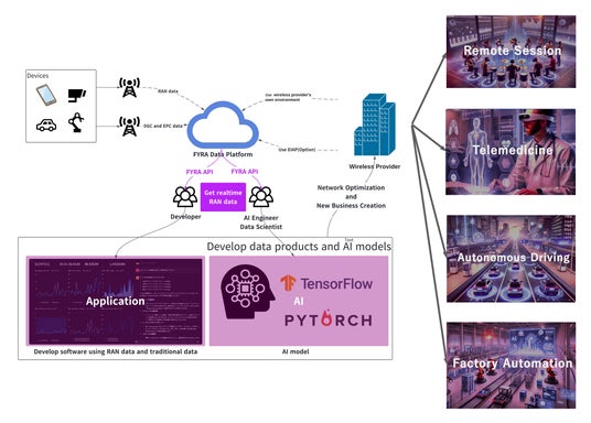 「FYRA Suite」は、O-RAN(オープンRAN)仕様に準拠したrAppを活用し、通信事業者の基地局におけるRANデータをリアルタイムで可視化し、AIを用いてネットワークの課題やボトルネックを特定、解決策を提示するサービスです。モバイル通信ネットワークの運用最適化を支援し、より効率的な5G通信の活用を可能にします。