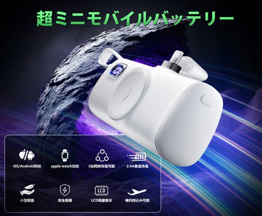 面倒なコード整理は卒業!Lightning/USB-C端子を本体に内蔵。iPhoneもAndroidも、デバイスを直接差し込むだけで即充電開始。バッグの中で絡まるケーブルや変換アダプタ探しのストレスを解消します。