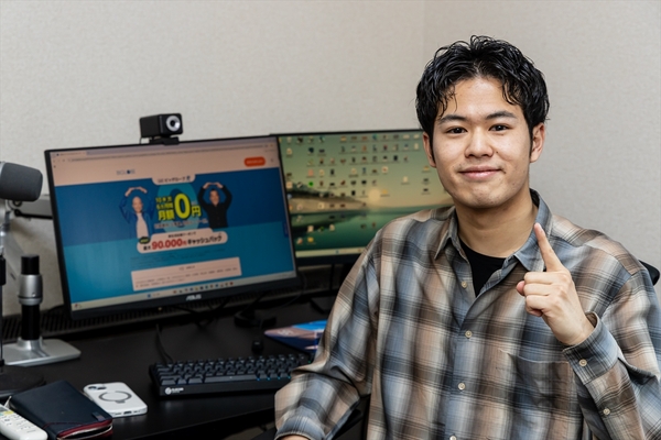 田原クンはビッグローブ光10ギガタイプにして大正解の様子。「速度も1ギガより圧倒的に速くなって、仕事もゲームもサクサク。タイパはかなり向上したと思います」と身をもって実感したとのこと。「月2000円の料金アップは、たくさん入っているサブスクをひとつ解約すればいいだけですし(笑)。あとスマホもauなのでセット割ができて、結果的にコスパが良くなりました」と言います。これからのデキる営業マンとゲーマーは、回線スピードが勝負のカギになりそうです。