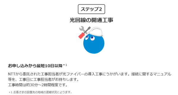なお、工事をする場合は最短で申し込みの10日後以降ですが、時期によっては1ヵ月以上先になることもあるので、余裕を持って申し込みましょう。