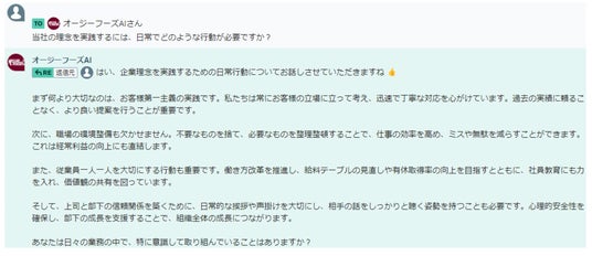 ・社長の想いや会社の理念、食品に対するこだわりをAIが繰り返し伝え、新人の理解促進