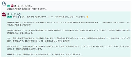「当社は創業以来、“食”を通じて多くの方々に貢献することを目指してまいりました。社員教育にも惜しみなく投資し、今後も挑戦し続けるために、AI技術を有効活用したいと考えていました。今回導入する『AI社長』が、私たちの理念やこだわりをより深く社員に伝え、業務の効率化と社員の成長に繋がることを期待しています。いつでも相談できる“バーチャル先輩”として、社内コミュニケーションをさらに活性化し、オージーフーズらしい文化を次世代に継承していきたいです。」