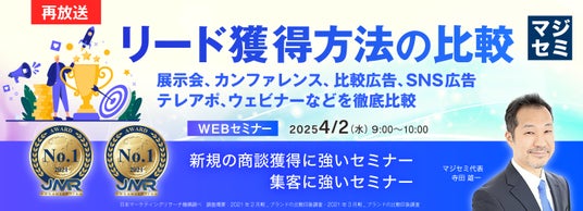 マジセミ株式会社は、大変好評をいただいた「【再放送】リード獲得方法の比較」というテーマのウェビナーを再放送します。