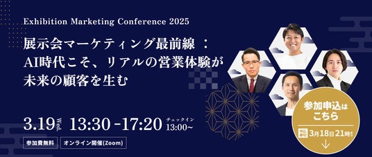 3/19 に開催される「Exhibition Marketing Conference 2025 展示会マーケティング最前線:AI時代こそ、リアルの営業体験が未来の顧客を生む」に代表の浜田が登壇します。