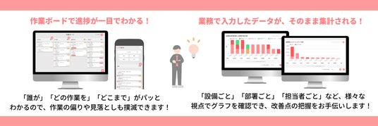 特に、作業ボードを活用することで修理状況がリアルタイムで可視化 され、修理業務の進捗確認がスムーズになりました。また、データを蓄積・分析することで、設備保全計画の精度向上にもつながっています。