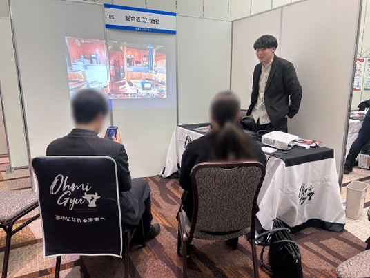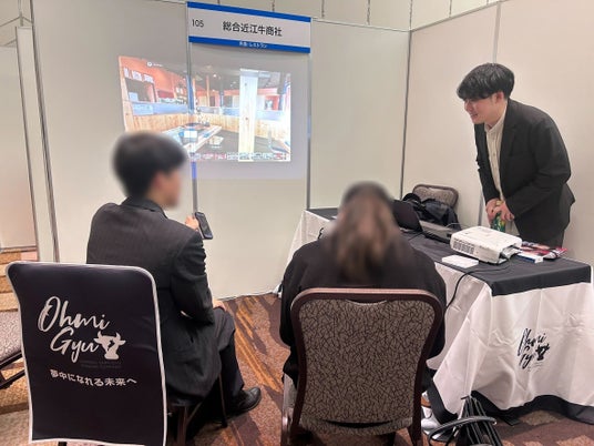 2025年3月10日(月)、琵琶湖プリンスホテルにて開催された「2026卒向けマイナビ就職セミナー@滋賀」において、株式会社総合近江牛商社様(所在地:滋賀県守山市、代表取締役:西野立寛)がオンライン採用テクノロジー『Tours』を活用した企業説明会を実施しました。本取り組みでは、バーチャル店舗ツアーを活用することで、通常の企業説明会とは異なる新たな体験を提供し、学生にリアルな職場環境を感じてもらうことを目的としました。