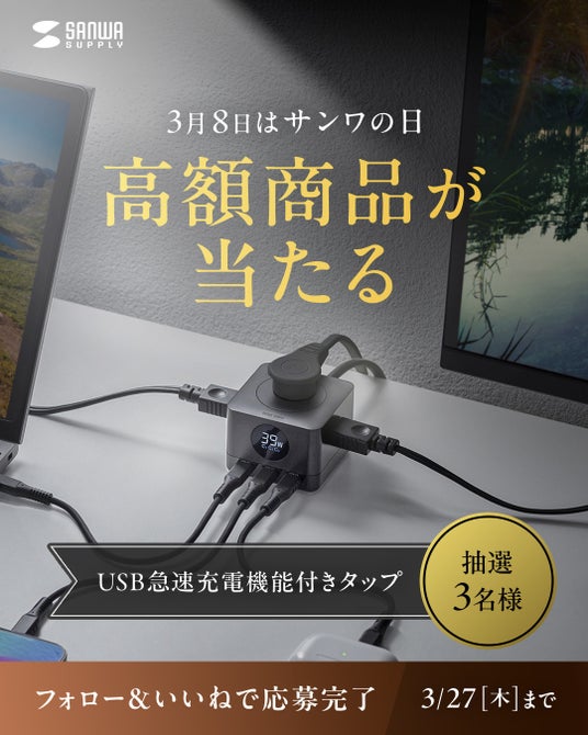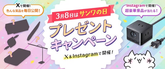 サンワサプライ株式会社(本社:岡山市北区田町1-10-1、代表取締役社長 山田和範)は、自社公式Instagramにて豪華賞品が当たるプレゼントキャンペーンを実施中です。