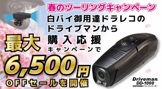 ヒリサーチ株式会社、所在地:東京都品川区)は、業界最長録画時間・前後撮影対応高性能モデル「Driveman DD-1000」が最大6,500円OFFで購入できる、春のツーリングキャンペーンを2025年3月13日(木)~3月31日(月)まで開催いたします。DD-1000を販売している弊社本店サイト、Amazon、Yahoo!ショッピングから購入が可能です。