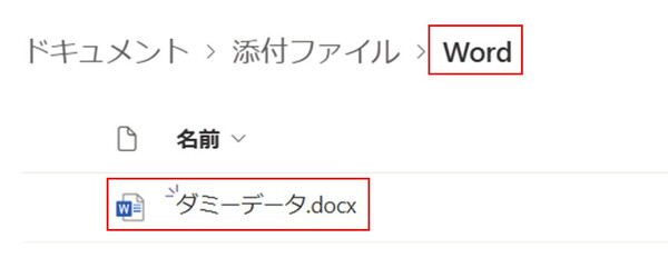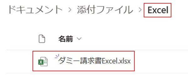ShrePointのドキュメント内に「添付ファイル」フォルダーを作成し、その中に「PDF」「Excel」「Word」の3つのフォルダーを作成しておきます。