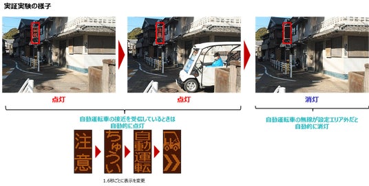 積水樹脂株式会社(本社:大阪市北区、代表取締役社長 兼 CEO 馬場浩志、以下「当社」)は、自動運転車両を使って高齢者向けの移動支援を行っている和歌山県太地町にて、自動運転車両の接近をLED表示板(オプトマーカーV)にて、歩行者に注意喚起する実証実験に2月14日(金)より3月13日(木)まで1か月間参画いたしました。本実験は、国土交通省 近畿地方整備局 紀南河川国道事務所の発注で、株式会社オリエンタルコンサルタンツ(本社:東京都渋谷区、代表取締役社長 野崎 秀則)が全体の企画提案と各種調査・検証を実施し、当社はITS(※)技術を活用した自動運転車両の接近をお知らせするシステムを提供しています。