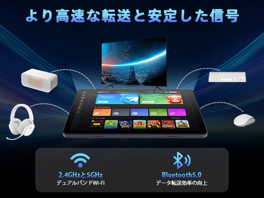 【𝟓𝐆/𝟐.𝟒𝐆 𝐖𝐢-𝐅𝐢モデル+ワイヤレス投影+𝐁𝐥𝐮𝐞𝐭𝐨𝐨𝐭𝐡 𝟓.𝟎】Android 15タブレット10インチWi-FiモデルA60は、5Gと2.4GHz Wi-Fiの両方に対応しており、ネットワーク環境に応じて最適な接続方法でストリーミングやオンラインゲームを快適に楽しめます。また、Android 15タブレット10インチA60はワイヤレス投影機能も搭載しており、画面を簡単にテレビにミラーリングでき、会議や映画鑑賞などに便利です。さらに、Android 15タブレットWi-FiモデルA60はBluetooth 5.0に対応しており、ワイヤレスイヤホンやキーボードなどの周辺機器と迅速かつ安定した接続が可能で、タブレットをより多用途に活用でき、快適な操作とエンターテインメントを提供します。