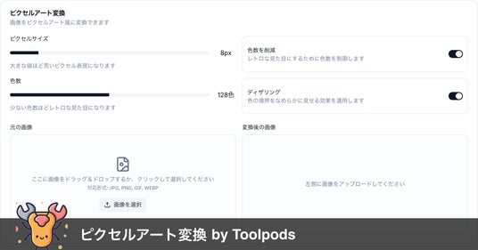 ドット絵やモザイク加工を簡単に!完全無料の「ピクセルアート変換 by Toolpods」がサービス開始