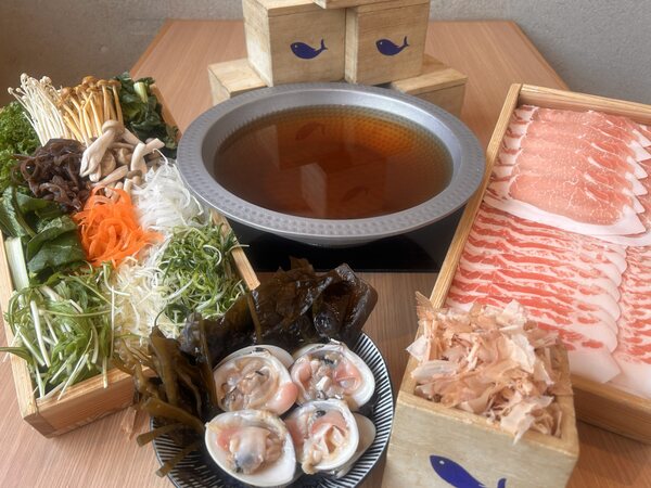 「出汁しゃぶおばんざい おかか」で、季節限定で「国産 地はまぐりと生わかめの黒豚出汁しゃぶ」を提供中です。