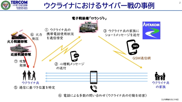まず、2014年7月、ゼノフィリアで起きた戦いでは、ウクライナ軍の無線機は電子戦での妨害で使用できなくなっていた。それにより、兵士の携帯電話に連絡手段が依存されていたのだが、ロシア側が携帯電話を傍受。個人を特定し、その家族も特定し、両親などに「あなたの息子さんが亡くなりました」といったメッセージを送っていたという。