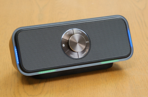 設楽「このウーファーは、プロトタイプ時点では、車載向けのウーファーにスタンドをつけたものだったんですよ。HVTという弊社独自の特許技術を使っていて、デスクに置いても振動がほとんどありません。」