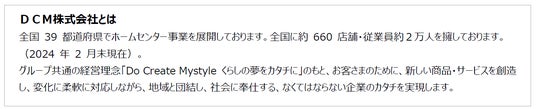 当社は、経営理念である「Do Create Mystyle くらしの夢をカタチに」のもと、お客さまのために、新しい商品、新しいサービスを創造してまいります。その取り組みのひとつとして専門店ECをオープンしました。今後も様々な商品カテゴリーの可能性を模索し、サービスの拡充に取り組んでまいります。