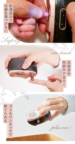 業界最小クラスながらハイパワーを誇り、3役(爪研ぎ・磨き・皮ケア)を1台でこなします。赤ちゃんから高齢者まで、安心して使える防護設計が施されています。