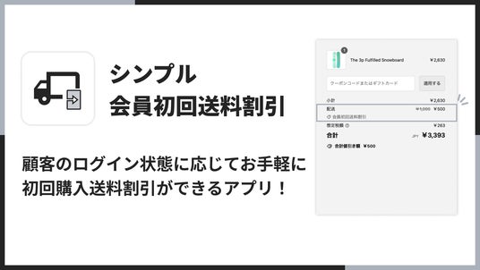 「シンプル会員初回送料割引|お手軽初回ログイン送料無料」は、Shopify ストアで顧客のログイン状態に応じてお手軽に初回購入送料割引ができるアプリです。