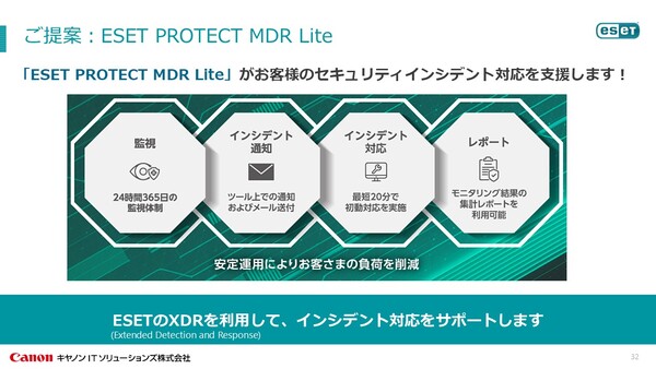 また、サポートに関してはESET社とキヤノンマーケティングジャパン(以下、キヤノンMJ)グループが国内拠点で日本語での対応を実施する。