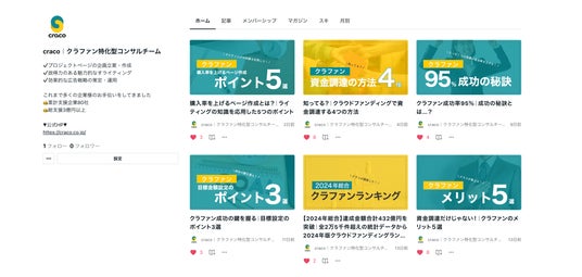 クラウドファンディングに特化したコンサル事業を行う株式会社craco(以下弊社)は2025年2月より「公式 Instagram」と「公式note」開設いたしました。