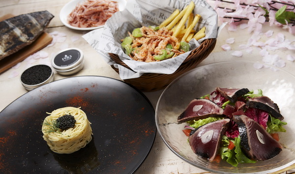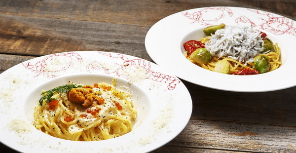 パスタも春夏仕様にバージョンアップ。ウニとイクラの贅沢コンビ「ウニとイクラの贅沢カルボナーラ」、大ぶりのしらすの塩味と芽キャベツのほろ苦さにトマトの風味を効かせた「国産釜揚げしらすと芽キャベツのペペロンチーノ」の2種が登場。