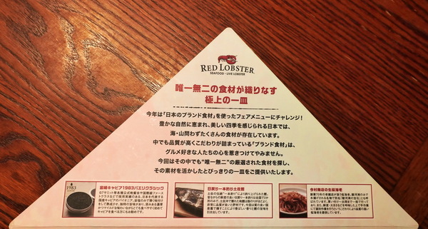 レッドロブスターは3月11日から、年間フェアメニュー「DELICIOUS JAPAN」の発売を開始、第1弾は春編として「日本のブランド食材」を使用した3品が提供されている。