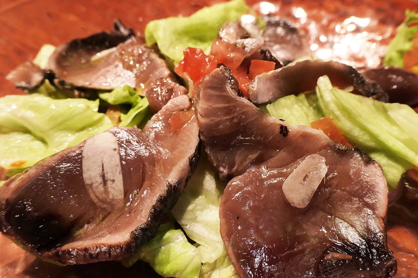 うまいカツオに、オリーブオイルとガーリックの香りで、とても美味しく頂きました。「龍宮のしほ」をちょっとつけるとウマサがグッと引き立ちます。カツオのタタキを洋風でいただく体験が楽しいですね。最初のサラダの代わりに食べるのもグッドです。