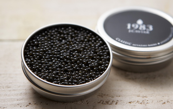 「宮崎キャビア1983バエリクラシック」はG7サミット等公式晩餐会や国際線ファーストクラスなどで採用実績のある、日本を代表する国産キャビア。岩塩のみで薄く味付けをして熟成させ、独特の旨味があり、深みある濃厚かつマイルドな味わいながらとても食べやすく初めてキャビアを食べる人にもお勧め。