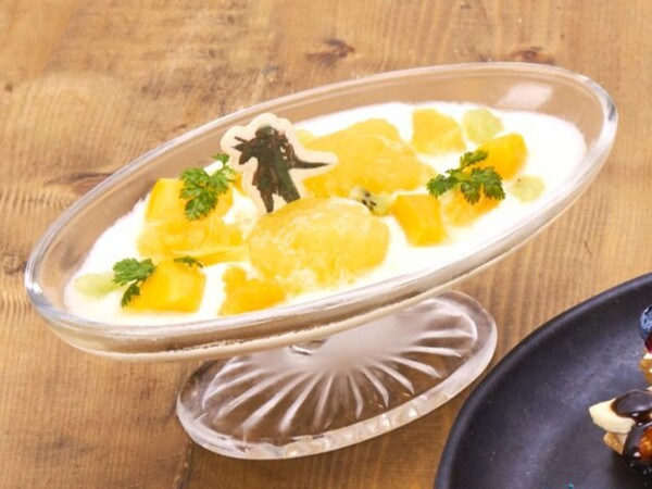 また、公開されたメニューの中には「蜘蛛恐怖症対策モードゼリー」なる商品も。これは作中のオプションである「蜘蛛恐怖症対策モード」をオンにすると、虫型の小型モンスターがスライム状の見た目になることを再現したもの。もちろん虫は使われておらず、オレンジゼリーのフルーツヨーグルトとのことなので、安心して食してほしい。