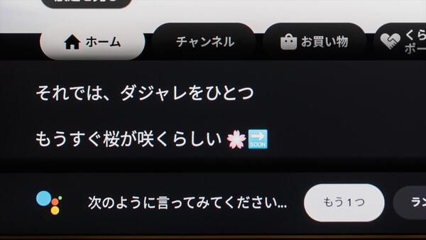 スマイLINK TV Stickは音声認識に対応しており、Googleアシスタントの操作が可能です。声だけで操作できる点は便利ですが、腹の虫の鳴き声を聞かれないように気をつけなければいけないかも……。