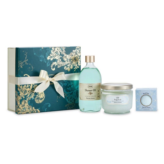 ブランドのアイコン「ボディスクラブ」をはじめとした、SABONで人気のバス、ボディケアアイテムがそろったキット。上品で清々しい「デリケート・ジャスミン」の香り。