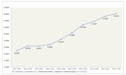 (引用:平成27年度工賃(賃金)の実績について|厚生労働省)
