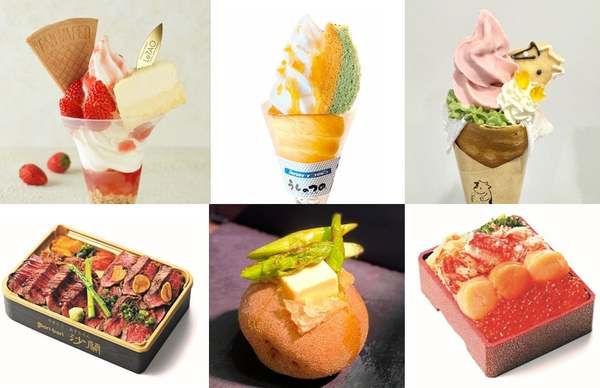 今回の展示の目玉は、約80種類の会場実演スイーツで、そのうち60種以上がパフェやソフトクリーム、ジェラートなどの冷たいスイーツで占められているという。特に人気の「ジャージーミルクパフェ(1カップ1,296円)」や「桜ソフトクレープ(1個1,350円)」など、京王百貨店限定のスイーツが見逃せない。また、来場者は3,000円前後、2,000円前後、1,080円と異なる価格帯で選べる贅沢弁当を楽しむことができる。