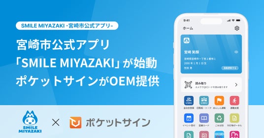 ポケットサイン株式会社(本社:東京都新宿区、代表取締役:梅本滉嗣、以下当社)は、宮崎市が行政サービスの利便性向上のために市民に公開するスマートフォン向けの公式スーパーアプリ*として、当社が開発するプラットフォームアプリ「ポケットサイン」と同アプリ内で利用できるミニアプリを宮崎市へOEM供給**します。市民は、マイナンバーカードを利用した公的個人認証サービス(JPKI)***で本人認証を行い公式スーパーアプリを利用します。ミニアプリとして自治会の電子回覧板サービス、災害時の避難支援サービスなどを利用でき、認証された本人情報を活用して行政サービスの提供が行われます。なお、宮崎市の公式スーパーアプリは本日、一般向けにサービスを開始しました。