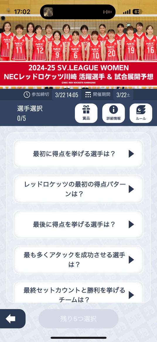 SVリーグ所属 NECレッドロケッツ川崎 3月22日(土)・23日(日)の活躍選手&試合展開予想をスポーツ予想アプリ「なんドラ」で開催!