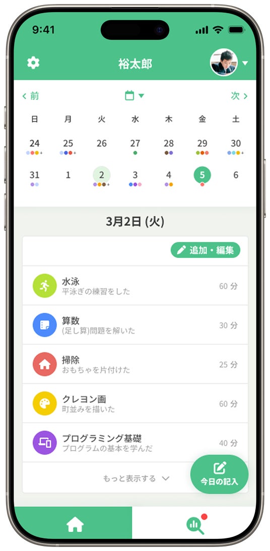 子どもの日々の「やった」「できた!」をスマートフォン上で簡単に記録し、成長を見守りながら、家族全員でその喜びを共有できるアプリです。小さな成長の積み重ねが、子どもの未来の可能性を広げていきます。