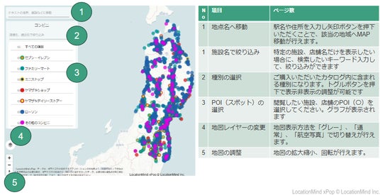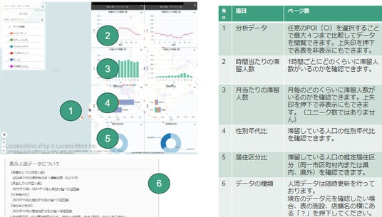 注1)「LocationMind xPop」データは、NTTドコモが提供するアプリケーションの利用者より、許諾を得た上で送信される携帯電話の位置情報を、NTTドコモが総体的かつ統計的に加工を行ったデータ。位置情報は最短5分毎に測位されるGPSデータ(緯度経度情報)であり、個人を特定する情報は含まれない。