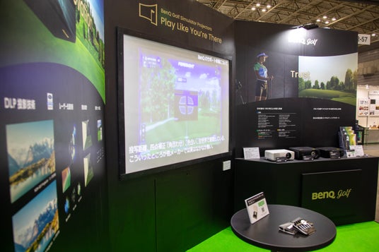 高輝度短焦点レーザープロジェクターとして人気の高い「LU935ST」を使用したデモンストレーションでは、来場した多くのユーザーの方にBenQプロジェクターの美しく、精細な映像を体験していただきました。また、3月末発売予定の新製品「AK700ST」のデモンストレーションでは4Kプロジェクターの映像美や、リモコンのボタンひとつで投写画面の調整ができる「自動ぴったり補正」機能による、BenQプロジェクターの手軽さをご紹介しました。BenQブースだけでなく会場内の協賛ブースでもBenQのプロジェクターを設置し、実際にシミュレーションゴルフのプレイ体験の場を創出しました。