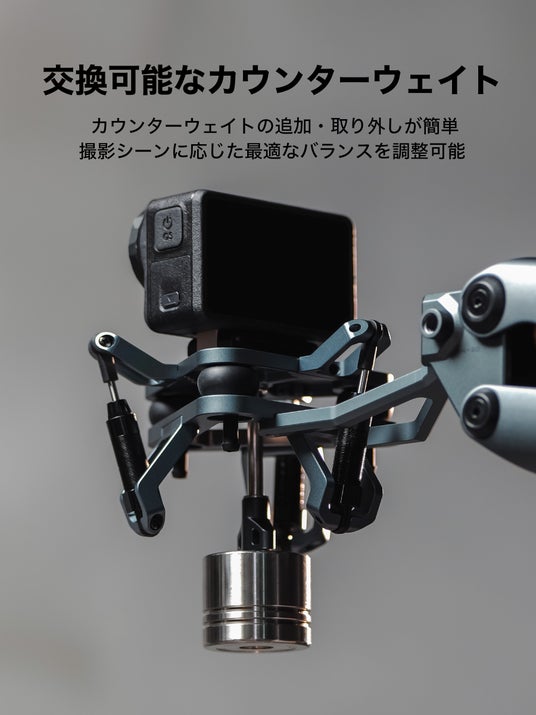 さらに、製品には航空グレードのダンピングオイルボールが使用されており、これが優れた安定性と耐久性を提供します。軽量で高耐久なアルミニウム合金フレームは、どんな撮影条件でも頼りになる性能を発揮します。また、撮影者が異なるシチュエーションに応じて重心調整を自在に行えるよう、別売のカウンターウェイトに対応しています。