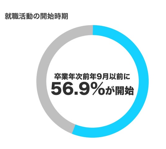 56.9%が、卒業年次前年9月以前に就職活動を開始しており、全体的に入社予定企業からの内定取得時期も早期化傾向。売り手市場なこともあり、採用選考の応募に関する活動量が減少しており「効率よく」就職活動をする学生が増えていることが伺えます。