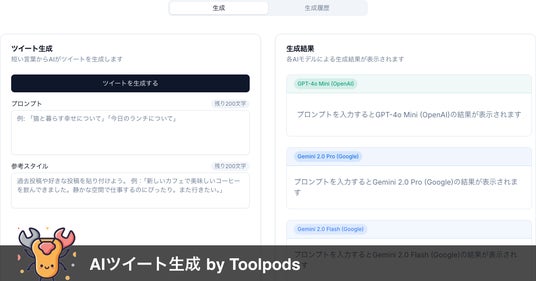 「それ、AIが書いたの?」話題性抜群のツイートを自動生成する「AIツイート生成 by Toolpods」が無料公開!
