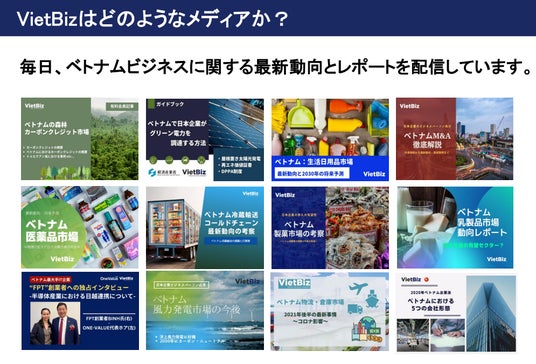 各業界に精通した専門家が執筆し、長年の知見と経験を基にした実践的な分析を掲載しています。また、業界や目的別に情報を探せる検索機能を備え、必要な情報にアクセス可能です。VietBizは、ベトナム市場でのビジネスを支える重要な情報源として、多くの日本企業に活用されています。