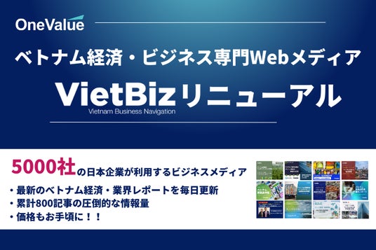 ベトナムに特化した経営コンサルティング企業であるONE-VALUE株式会社(東京都江東区、CEO:フィ ホア)は、「Vietbiz会員サービス」をリニューアルしたことを発表いたします。VietBizは日本のビジネスパーソンに向けて、ベトナム経済とビジネスに関するレポートを提供することを目的としています。