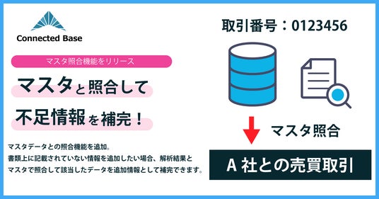 マスタデータ照合機能とは、マスタデータと任意のキー項目に合致した情報を追加・補完できる機能です。