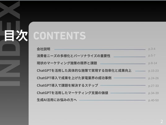 本レポートでは、ChatGPTを活用した具体的な施策や成功事例を取り上げ、企業がどのようにして成果を最大化できるのかを詳しく解説しています。業務効率の向上や競争力強化を目指す企業担当者におすすめの内容です。