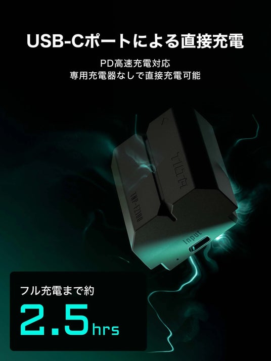 内蔵USB-CポートはPD高速充電に対応し、バッテリー専用の充電器なしでUSB-C充電器から直接充電できます。