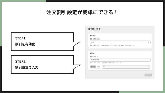 割引を有効化して、割引設定を入力するだけで会員注文割引を実現