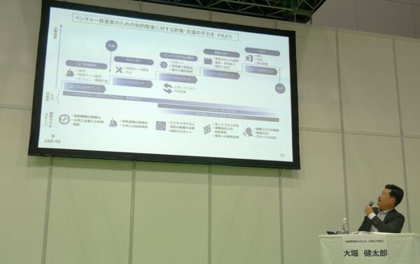 次のテーマ「お金・投資につなげるVC支援」では、大堀氏がIP BASEに公開されている「ベンチャー投資家のための知的財産に対する評価・支援の手引き」をもとに投資家が評価する知財戦略のポイントを解説した。同手引きは、スタートアップの成長段階に応じて対策すべきことが書いてあるのでスタートアップとしても一読しておくのがおすすめだ。